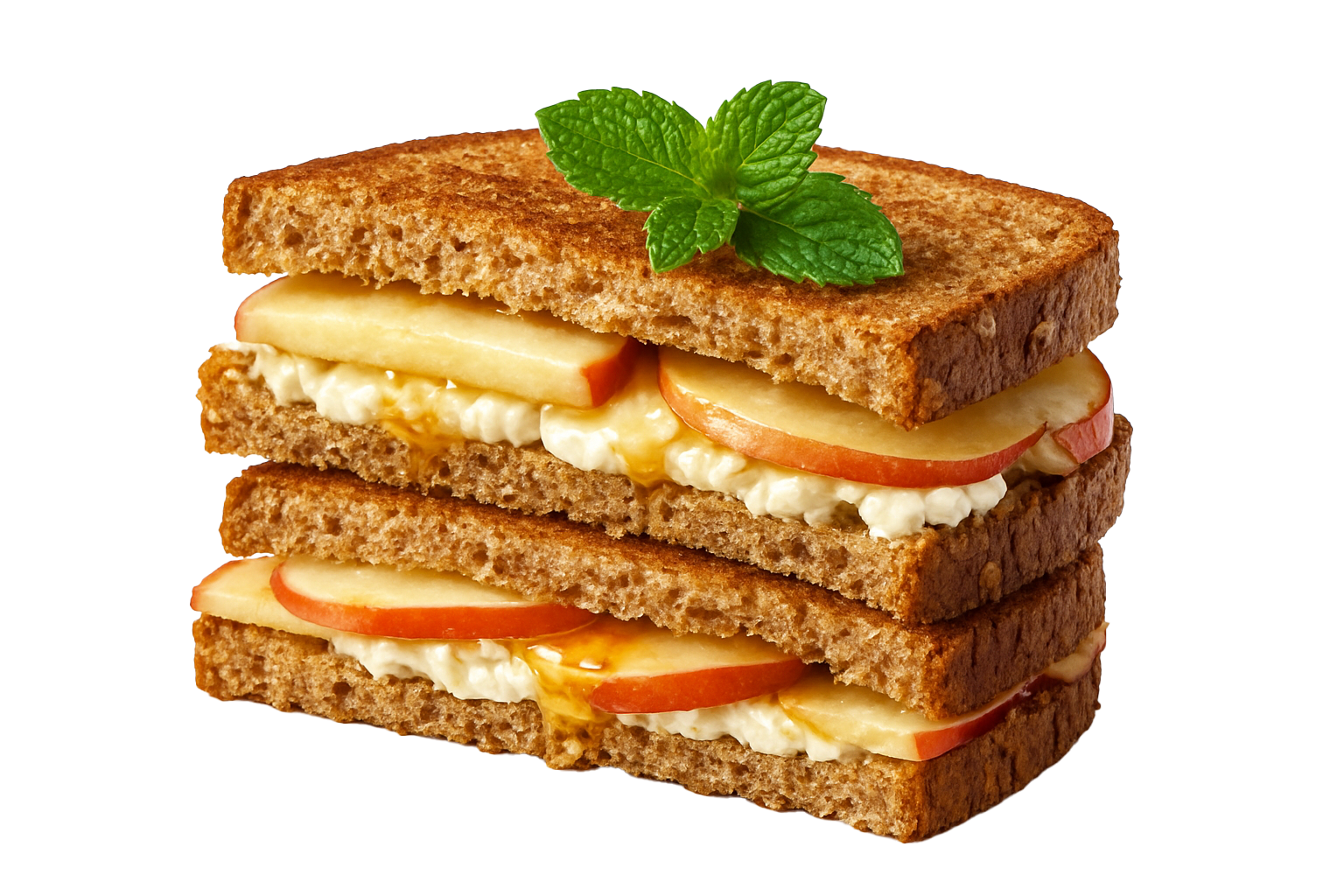 ingredienten: speltbrood biologische, appels, honing, geitenkaas en munt