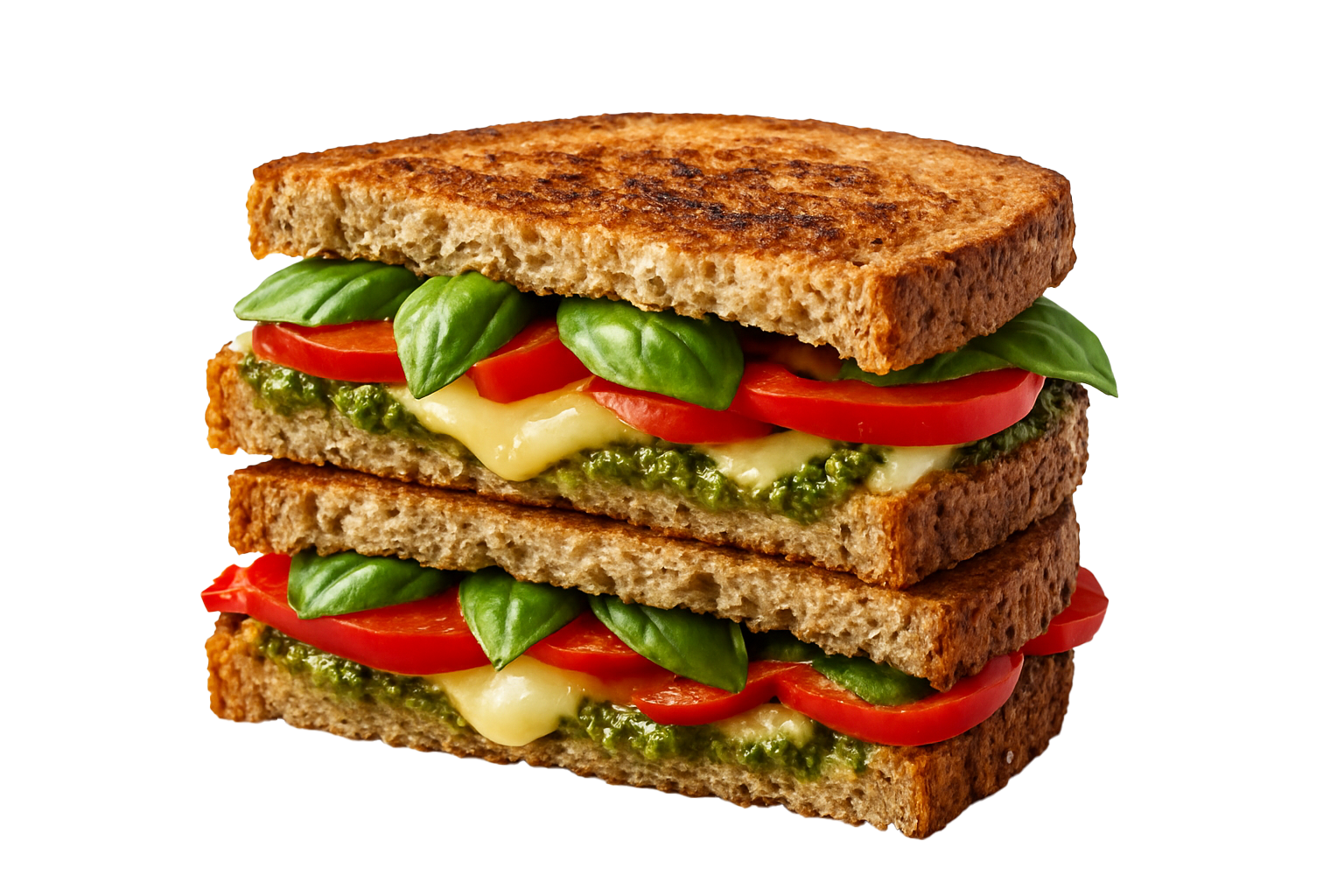 ingredienten: volkorenbrood, biologische, tomaten, kaas pesto paperika en basilicum